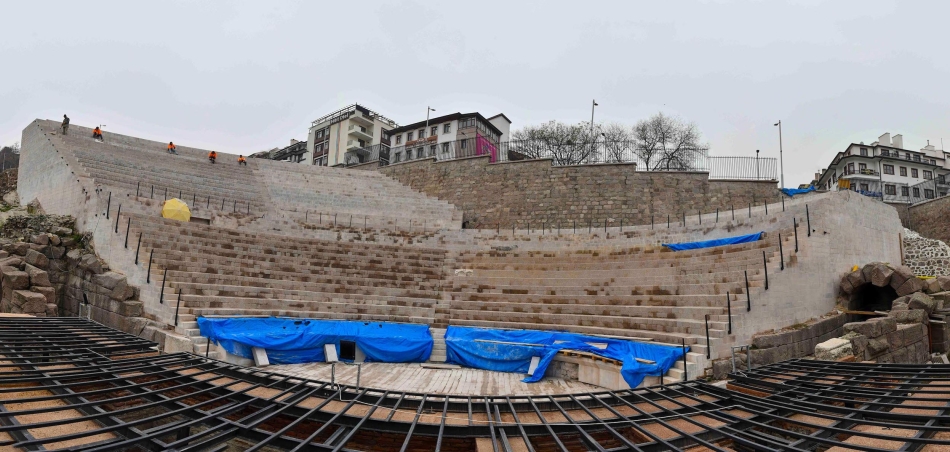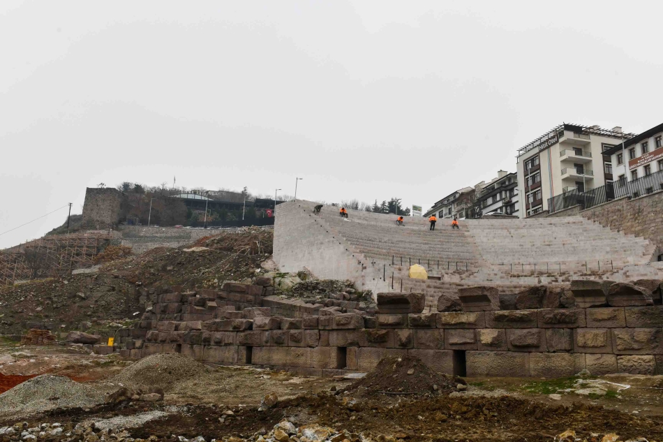 “Arkeopark projesi kapsamında çok sayıda seyir kafelerimiz, karşılama ve güvenlik merkezimiz oluşuyor. Bu bölgemizde sur duvarımızda birçok malzeme kaybı, derz boşalması ve eksiklikler vardı. Can ve mal kaybını engellemek adına burada güçlendirme çalışmalarını yaparken arkeolojik kazılarımıza devam ediyoruz. Burada yapılan restorasyon çalışmaları çağdaş tekniklere uygun şekilde sürdürülüyor. Yapılan çalışmalar doğrultusunda kışa hazırlık için arkeolojik alanımızı üzerini kapatıp prekast ayaklarla garvanize saç örtüyle tamamen koruma altına aldık. Çalışmalar kendi alanında uzman ekipler eşliğinde gerçekleştiriliyor. Roma Tiyatrosu’nda yine çağdaş teknikler içerisinde eskitme çalışmaları yürütülüyor. Cavea örtüsü tamamen bitirildi, Ankaralıların beğenisine sunulmak üzere son rötuşlarını yapıyoruz. Tiyatromuzdaki birçok bezemeli olan nitelikli olan taşların konservasyon çalışmaları yapılmış olup tamamlama çalışmalarının birçoğu bitirildi. Çalışmalarımızı 2023 yılı içerisinde tamamlamayı planlıyoruz.”