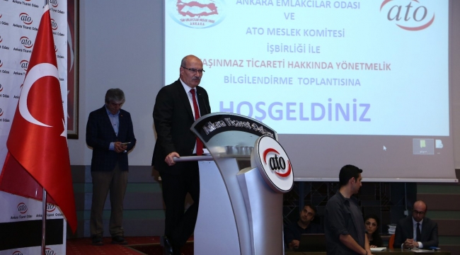 ATO gayrimenkul Danışmanlık Hizmetleri Meslek Komitesi'nin Ankara Tüm Emlakçılar Meslek Odası (ATEM) iş birliği ile düzenlediği "Taşınmaz Ticareti Hakkında Yönetmelik Bilgilendirme Toplantısı" ATO Meclis Salonu'nda yapıldı