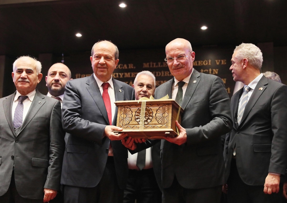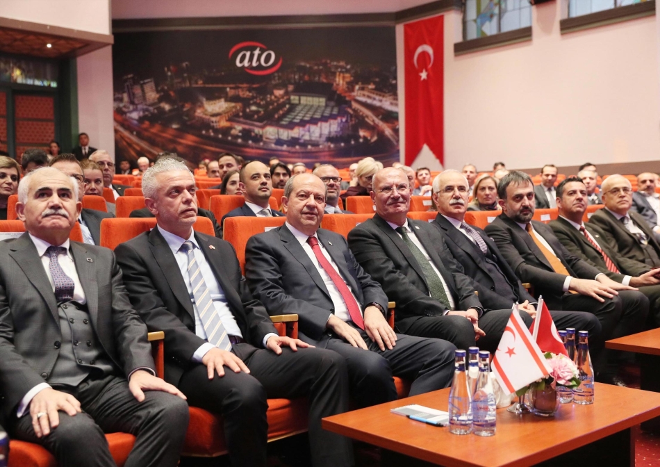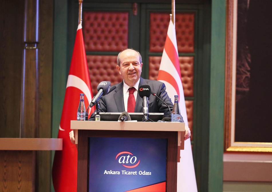 ATO Meclis Salonu’nda gerçekleşen toplantıda konuşan Cumhurbaşkanı Tatar, Kıbrıs Türkleri üzerinde yıllardan beri uygulanan kısıtlama, engelleme ve ambargolara son verilmesi gerektiğini belirterek, “Kıbrıs'ta bir anlaşma olacaksa kuzeyde Türk devleti ile güneyde Rum cumhuriyetine dönüşmüş Kıbrıs cumhuriyeti arasında olabilir. Bu anlaşma olacaksa kuzeydeki Türk devletinin tanınması gerekiyor." dedi