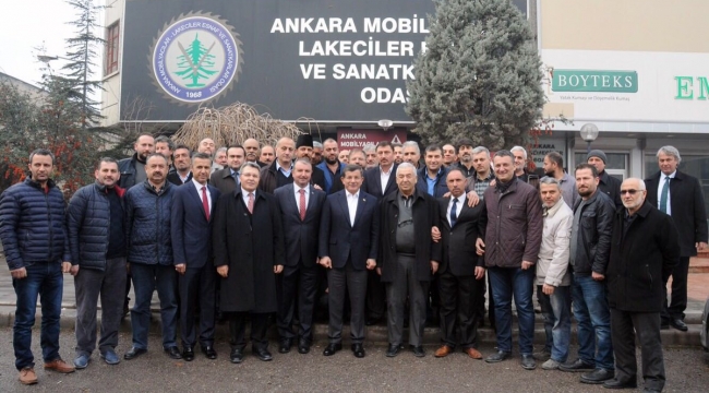 Eski Başbakan Ahmet Davutoğlu, Ankara Altındağ bölgesinde kıldığı Cuma namazı sonrası, siteler mobilyacılar esnafından gelen davet üzerine, esnaf sofrasına katıldı