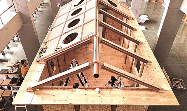 Bu kapsamda Stüdyo, Japonya’dan Shigeru Ban Architects ve Voluntary Architects Network işbirliğiyle “Paper Log House (Kâğıt Masura Ev)” projesinin tasarımını ve prototip yapımını gerçekleştirdi. Evlere adını veren masura, karton ve tahta gibi ürünlerden yapılan silindir anlamına geliyor. Geçici barınma çözümleriyle tanınan, Pritzker ödüllü, dünyaca ünlü mimar Shigeru Ban önceki hafta Tokyo’dan ODTÜ’ye gelerek ODTÜ Mimarlık Fakültesi’nde bugüne kadar yaptığı geçici yapıları içeren çok ayrıntılı bir konferans verdikten sonra öğrencilerin inşa ettiği prototipin açılışını yaptı.