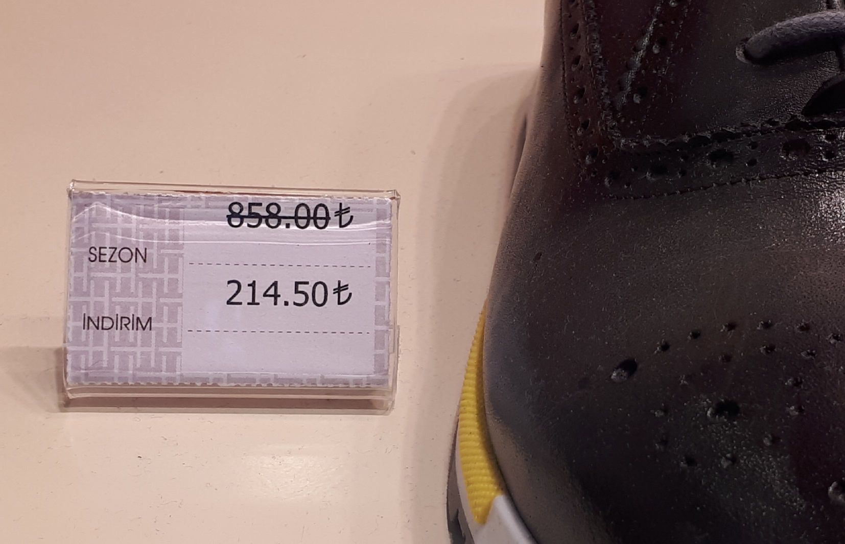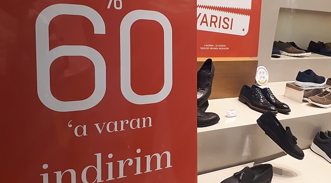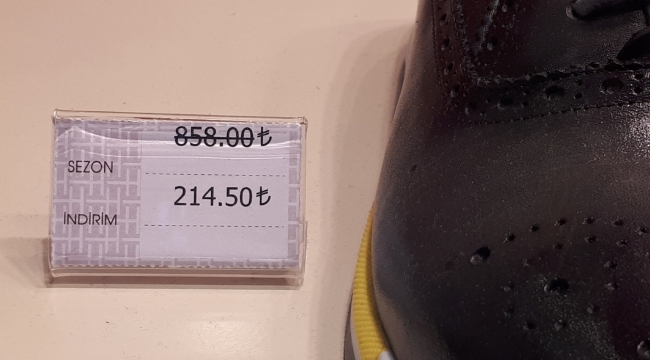 Halkın alım gücünün düşmesi, mağazaları inanılmaz indirimler yapmaya itiyor. Ankara’da bir AVM’de ayakkabı mağazası olan firma, %60 indirime gittiğini ilan etti. Marka ürünler satan mağaza, Şubat 2018’de tam 858 TL’den sattığı ayakkabıyı, bugün 214 TL’den etiket ile satması, tüketicilerin satın alma motivasyonunu kırdı