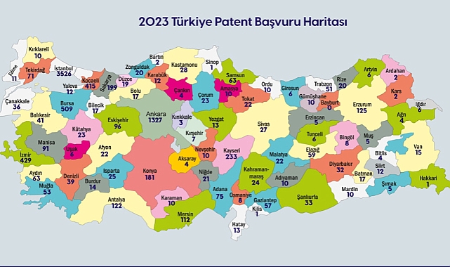 2023 yılında Türk Patent ve Marka Kurumuna yerli ve yabancı 16.433 patent, 3.400 faydalı model, 183.149 marka ve 58.076 tasarım olmak üzere üzere toplam 261.058 başvuru yapıldı.